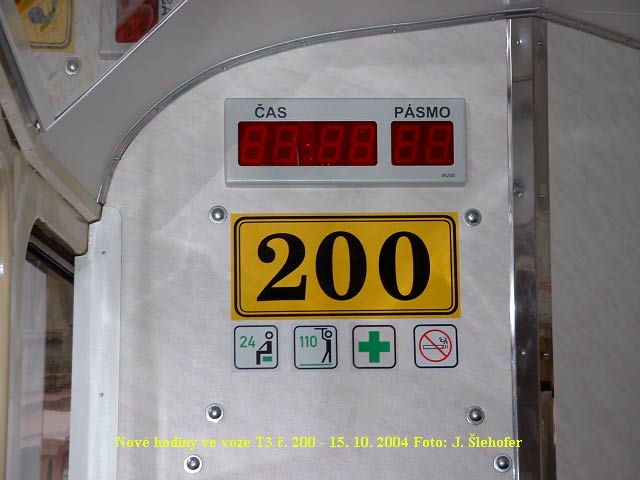 nemodernizovaných vozech jsou digitální hodiny napojené na řídící počítač. U starých souprav T3