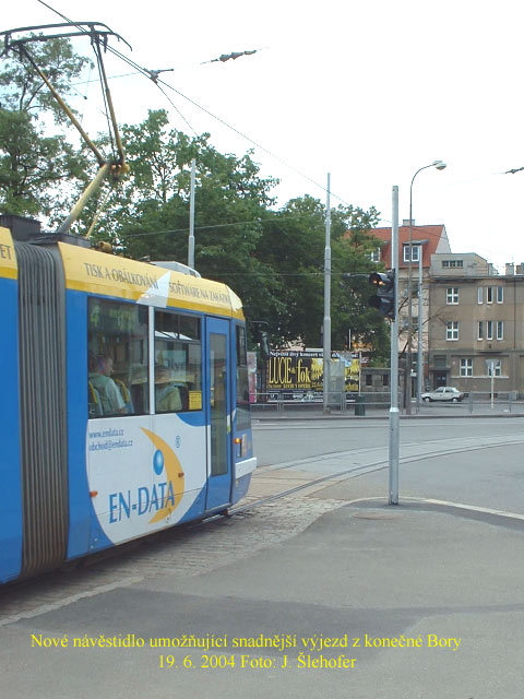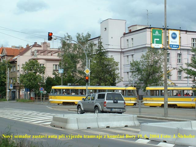 Na Borech byla nainstalována světelná signalizace umožňující jednodušší výjezd tramvají z konečné Bory.