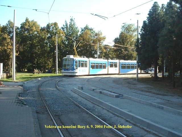 DP náhradní autobusovou dopravu. Tramvajové linky č. 1 a 4 z Bor a Slovan jezdily pouze do centra města, kde se otáčely.