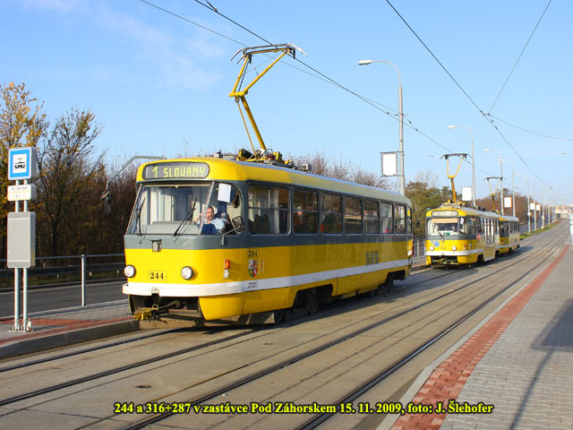 Díky výše uvedené výluce jsme se s tramvajovým optimalizovaným T3R.P č. 244 linky č. 1 a T3R.PLF č. 316 + T3R.P č. 287 v zastávce Pod Záhorskem, kde na sebe nyní vozy linek 1 a 4 o víkendu čekají 15. 10. 2009 víkendovým provozem mohli v praxi poprvé setkat až v neděli 15. 11. 2009. Všechny tři tramvajové linky nyní jezdí o víkendu přes den v jednotném taktovém intervalu 7,5 minut. Mezi linkami 1 a 4 je zajištěn přestup v zastávce Pod Záhorskem, kde na sebe tramvaje pravidelně čekají. Později je přestup, kde na sebe vozy čekají, přesunut do sadů Pětatřicátníků.