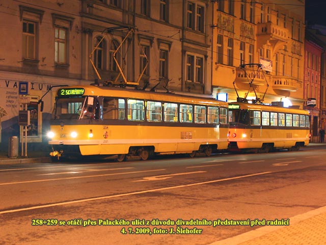 KT8D5 č. 289 projíždí kolem divadelního hlediště před plzeňskou radnicí 5. 7. 2009 Solaris č. 523 na lince 1/2 při výluce v době divadelního představení na náměstí Republiky 10. 7. 2009 Ve večerních hodinách ve dnech 27. 6. 2009 až 12. 7. 2009 cca od 21:00 do 23:30 probíhá probíhá výluka linek č. 1 a 2 přes nám. Republiky z důvodu konání večerních divadelních představení Revizor před plzeňskou radnicí. V té době končí tramvaje od Slovan a Světovaru v obratišti Souprava 258+259 v Palackého ulici při výluce 4. 7. 2009 KT8D5 č. 296 již projíždí při děkovačce kolem pódia ve 23:45