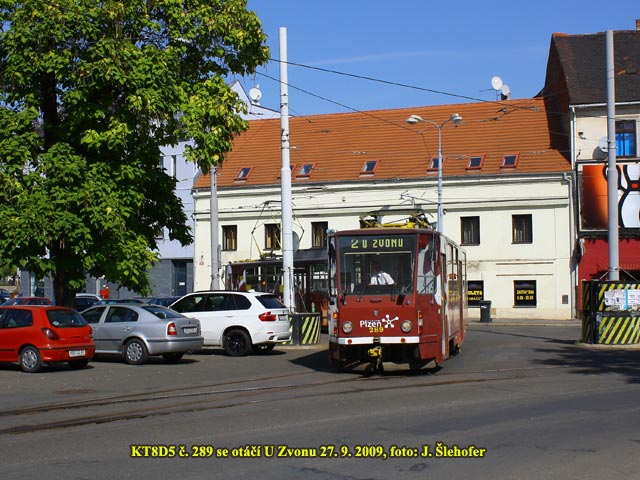 O prodlouženém víkendu 26. - 28. 9. 2009 probíhala výluka na linkách č. 1 a 2 v úseku U Zvonu - Sady Solní ulice při opravách po loňském prasklém potrubí 27. 9. 2009 Gumotlačka zatlačuje gumu kolem kolejnic do BKV panelů v Solní ulici 28. 9. 2009 Pětatřicátníků. Důvodem byly opravy kolejiště v Solní ulici. Zdejší BKV panely byly podemlety vodou loni v listopadu při prasklém potrubí. Od té doby zde byla omezena rychlost na 10km/hod. Během víkendové výluky se tramvaje od Slovan a Světovaru otáčely na trojúhelníku U Zvonu. Na těchto částech linek 1 a 2 byly nasazeny výhradně KT8D5 č. 289 se otáčí U Zvonu při výluce 27. 9. 2009 KT8D5-RN2P č. 293 se otáčí U Zvonu při výluce 27. 9. 2009 obousměrné vozy KT8D5-RN2P (a poslední KT8D5 č. 289). Dvojka od Skvrňan a jednička od Bolevce se otáčely Palackého ulicí v sadech Pětatřicátníků. Odtud ke Zvonu jezdil autobus náhradní dopravy přes náměstí ke Zvonu a zpět pak po Americké třídě.