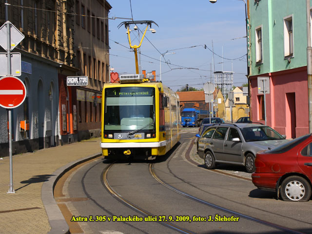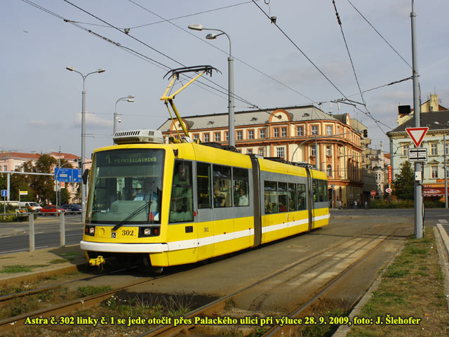 Astra č. 305 v Palackého ulici při výluce 27. 9. 2009 Souprava 323+252 odbočuje do Palackého ulice při výluce 27. 9. 2009 K3R-NT č. 314 v sadech Pětatřicátníků při výluce 27. 9. 2009 Astra č. 304 u zastávky Mozartova směřuje z důvodu výluky pouze do Sadů Pětatřicátníků 27. 9. 2009 K3R-NT č. 314 odbočuje ze sadů Pětatřicátníků směrem do Skvrňan 28. 9. 2009 Astra č. 302 linky č. 1 se jede otočit přes Palackého ulici zpět do sadů Pětatřicátníků 28. 9. 2009 Autobus č. 530 pod divadlem při výluce 28. 9. 2009 Záložní soupravy odstavené v Mozartovce 28. 9. 2009
