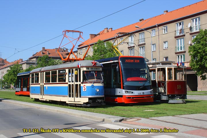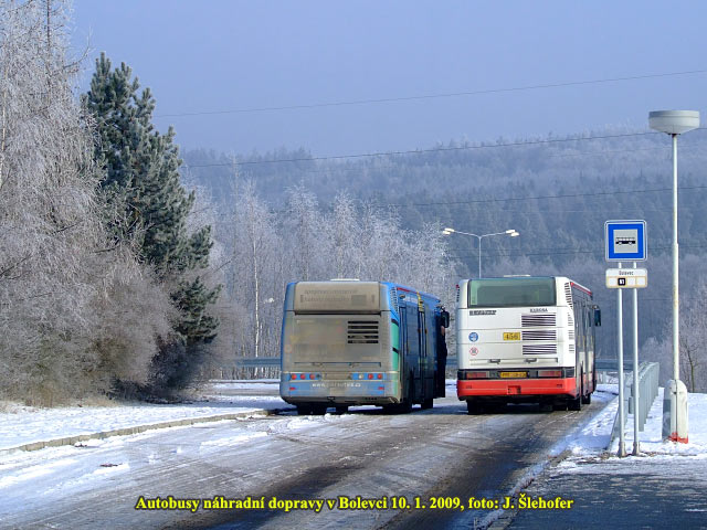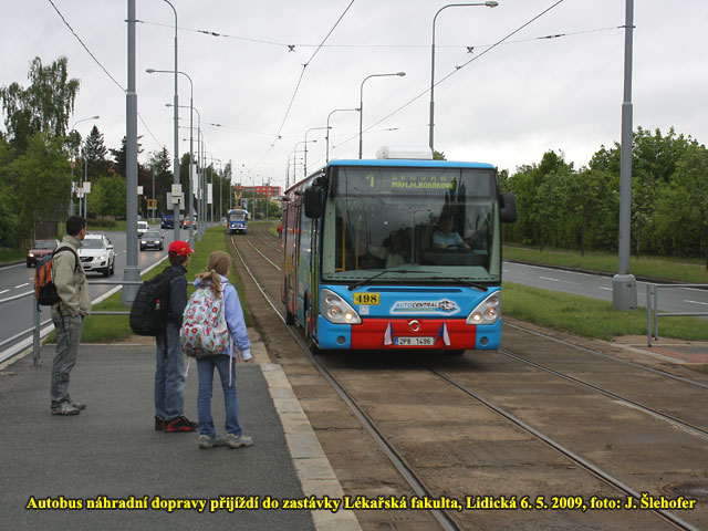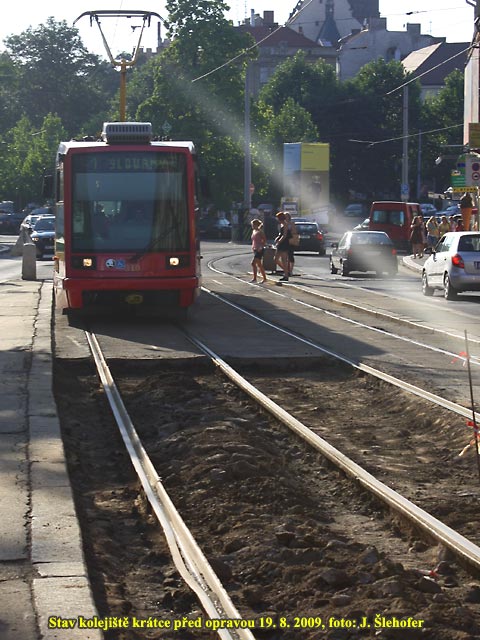 Dočasně společná konečná pro Linky č. 1 a 4 Košutka se soupravou 219+220 a Astrou 301 - 9. 7. 2009 Postupující rekonstrukce na Karlovarské třídě 10. 7. 2009 T3M č. 211+212 na jednokolejce u lékařské fakulty na Karlovarské třídě 10. 7. 2009 Autobusy náhradní dopravy (Citelisy č. 500 a 492) v Bolevci 11. 7. 2009