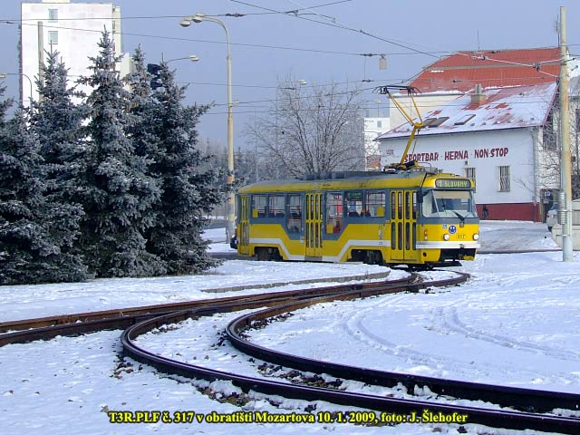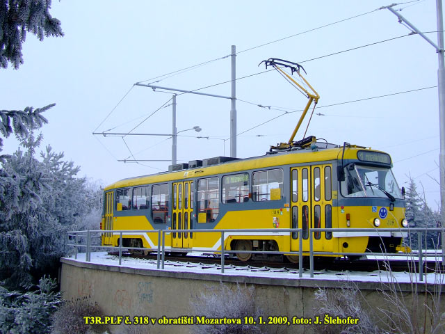 T3R.PLF č. 318 v obratišti Mozartova 10. 1. 2009 T3R.PLF č. 317 v obratišti Mozartova 10. 1. 2009 T3R.PLF č. 318 v obratišti Mozartova 10. 1. 2009 T3M č. 213 v obratišti Mozartova 10. 1. 2009 T3R-PLF č. 315 přijíždí do zastávky U Gery, Lidická následovaná autobusem náhradní dopravy 10. 1. 2009 Přestup na autobus náhradní dopravy U Gery 10. 1. 2009 Info o výluce na zastávce 10. 1. 2009 T3M č. 213 v obratišti Mozartova 10. 1. 2009