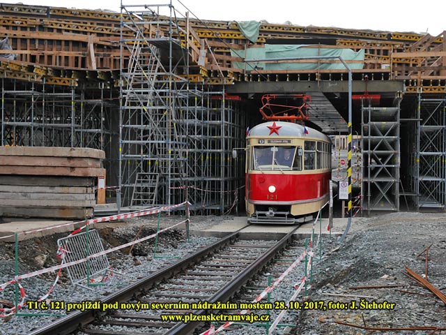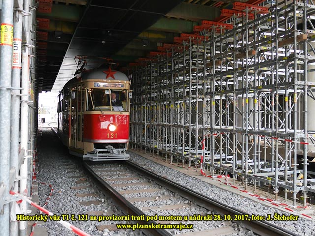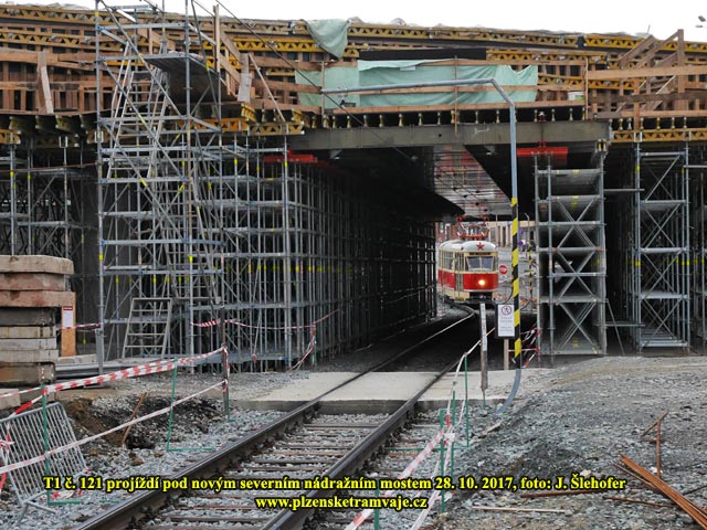Od 7. 11. 20017 je provoz tramvají pod železničním mostem obnoven a jak je patrné již i z předešlých fotografií, tak na mostě je již budováno železniční kolejiště.