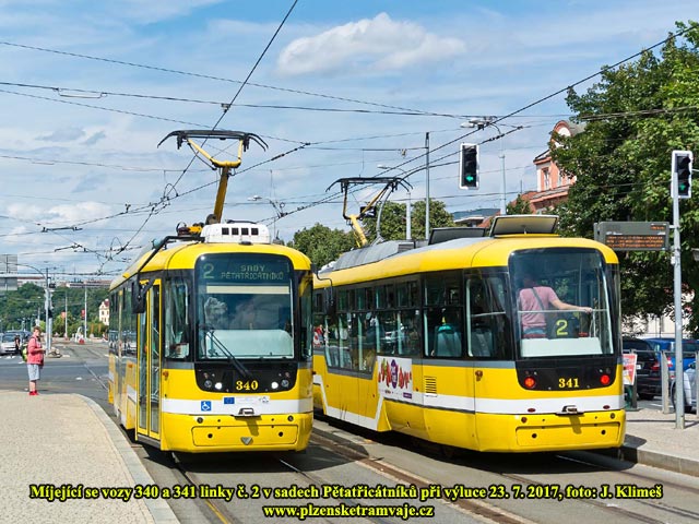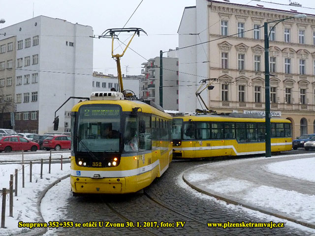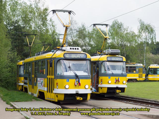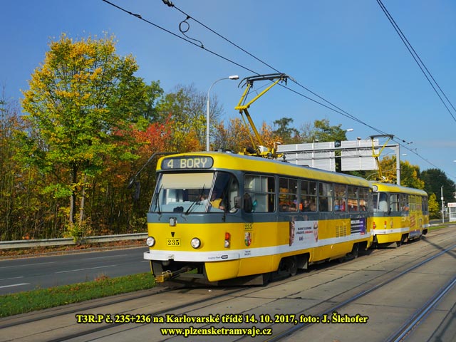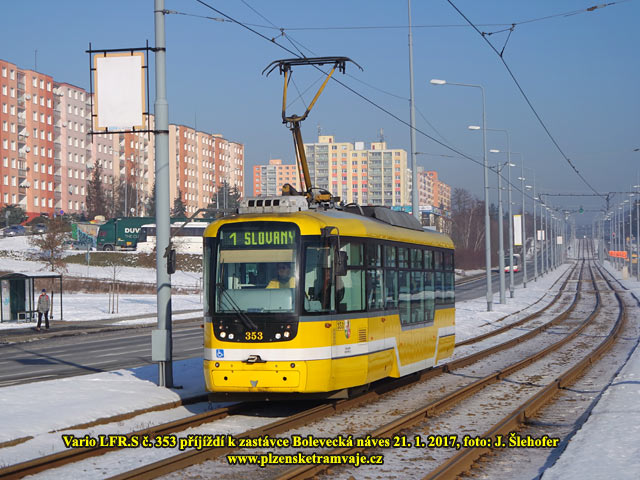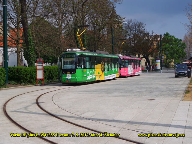 Tramvaje provozované na linkách 1 a 2 (s trasami Bolevec - U Zvonu a Skvrňany - U Zvonu) a také na bezvýlukové lince č. 4 (Bory - Košutka) jsou
