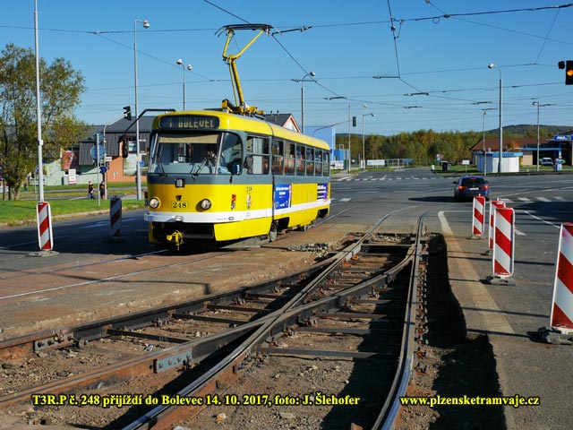 Důvodem výluky byla výměna sjezdové výhybky na konečné v Bolevci. Na posledním snímku již kolem ní projíždí vůz č. 248 krátce po skončení výluky po patnácté hodině.
