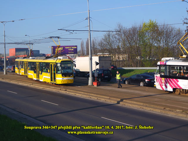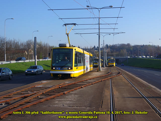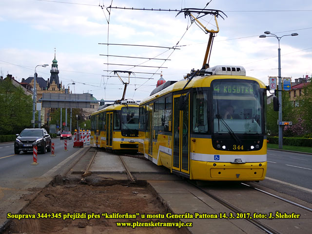 kde tramvaje přejedou po nové spojce na prostisměrnou kolej. Pokračují pod mosty u nádraží až na Mikulášskou třídu, kde se přes kolejovou spojku dostanou