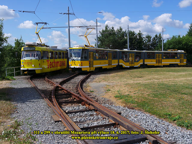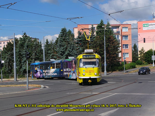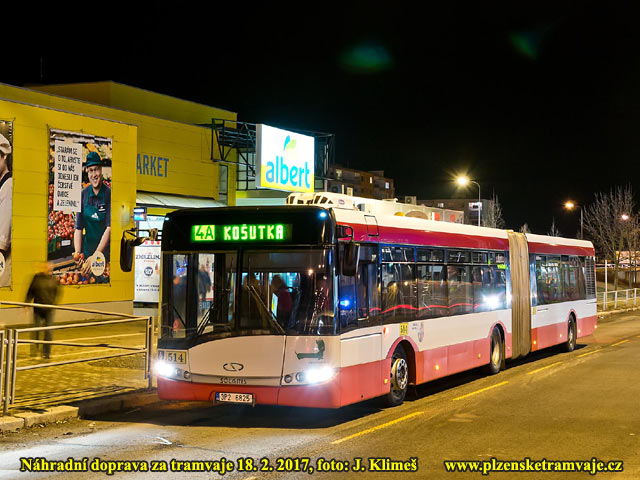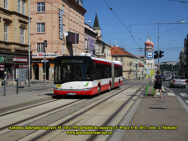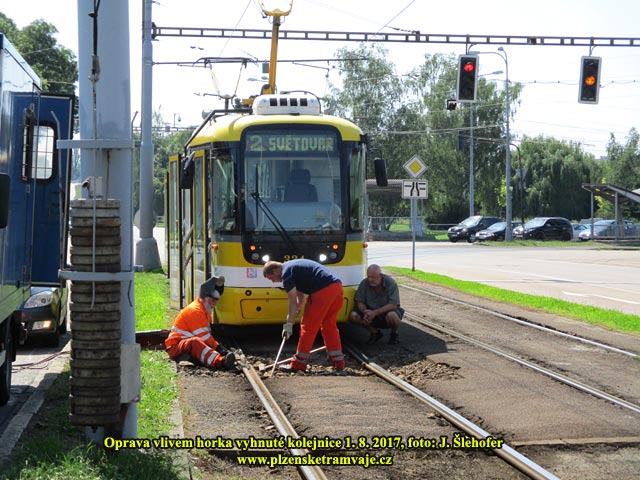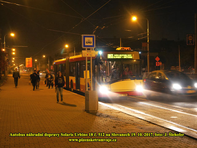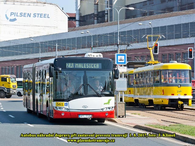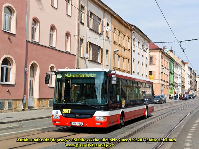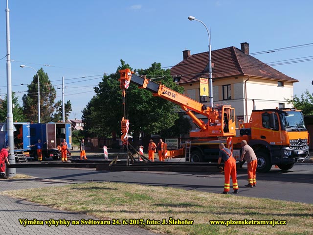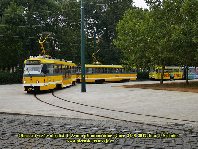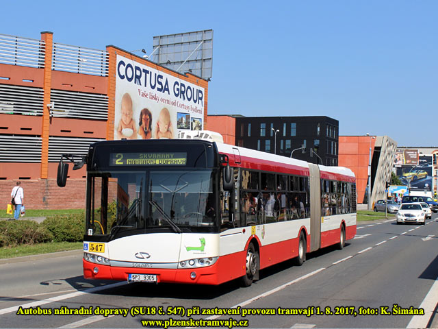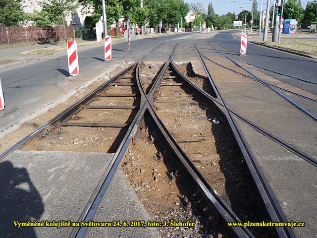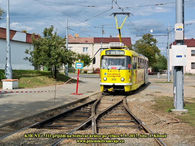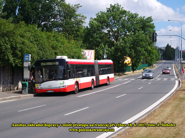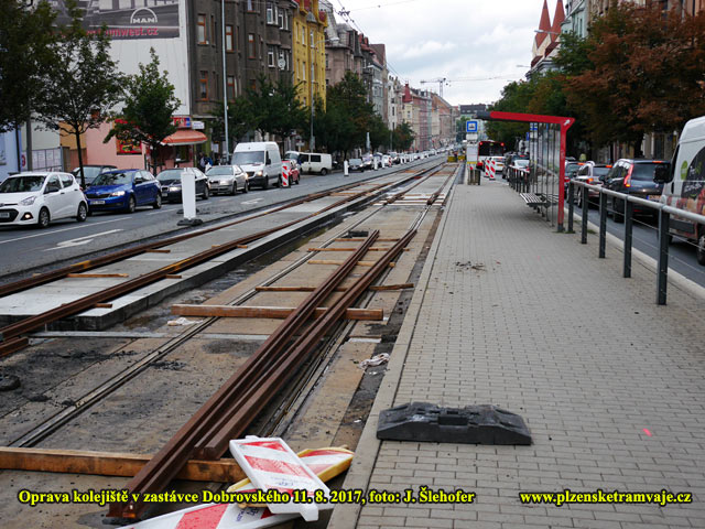 Z důvodu stavebních prací na tramvajové trati na Koterovské ulici a v obratišti Světovar probíhaly o sobotách 26. 8. a 9. 9. 2017 od cca 6:30 do cca 15:00
