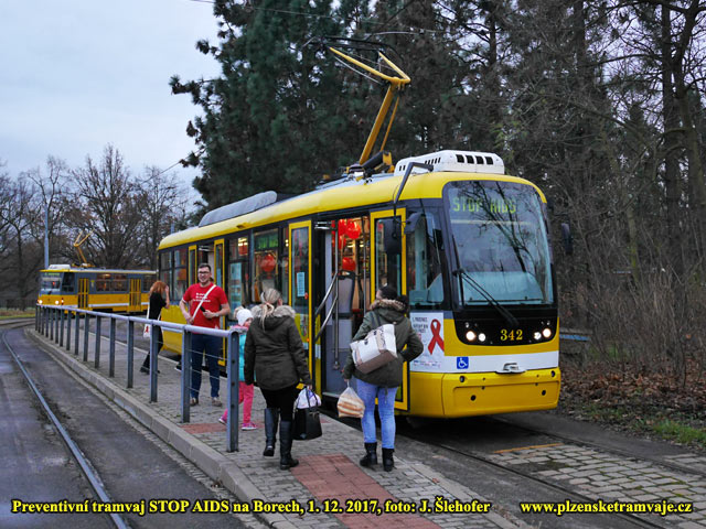 vůz Vario LFR.S č. 342. Studenti medicíny v něm opět informovali o způsobech nákazy HIV, rozdávali informační materiály a kondomy. Tramvaj městem projížděla