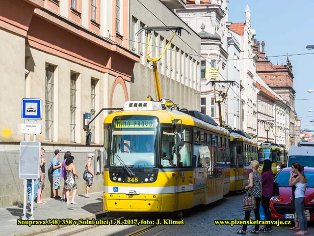 Tramvaje linky č. 1 jezdí tak nezvyklým odklonem. Ze Solní ulice směřují rovně na Palackého náměstí,