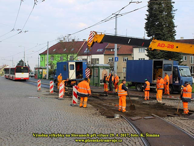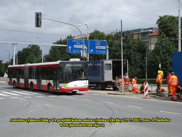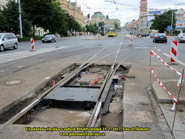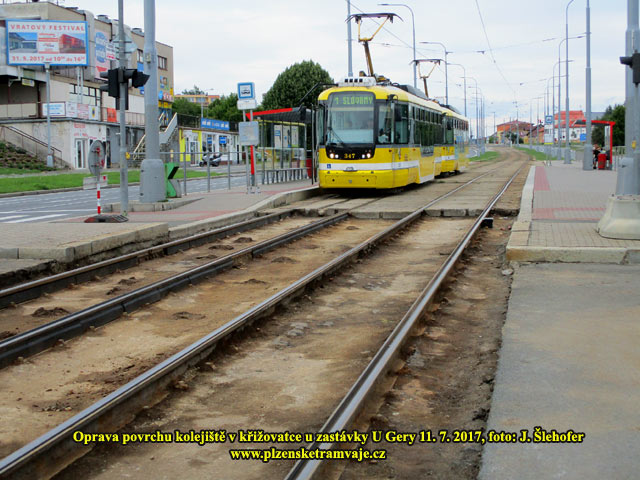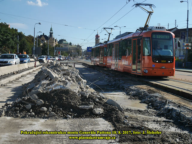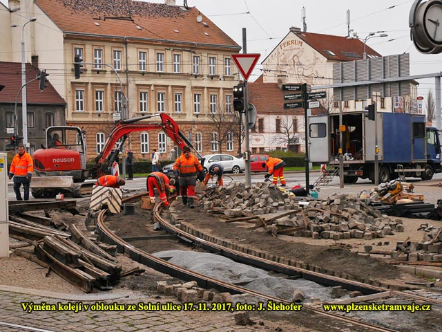 Od čtvrtka 16. 11. do neděle 19. 11. 2017 probíhá výměna kolejí v oblouku ze Solní ulice směrem k mostu Generála Pattona. Výměna probíhá po částech,