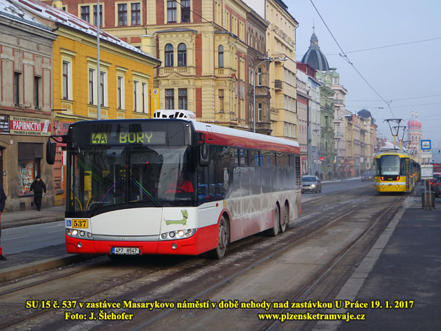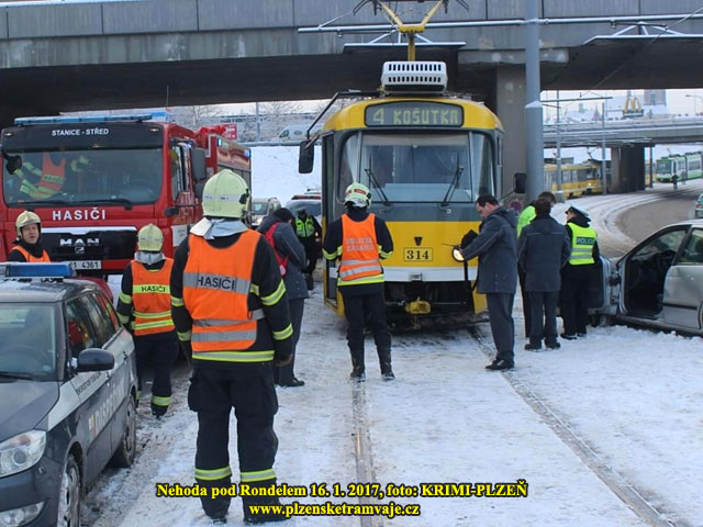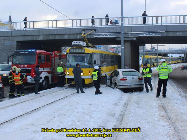 V pondělí 16. 1. 2017 došlo krátce před devátou hodinou ranní k nehodě. Řidička automobilu jedoucího směrem do centra, nezvládla svůj vůz a vjela na tramvajové koleje,