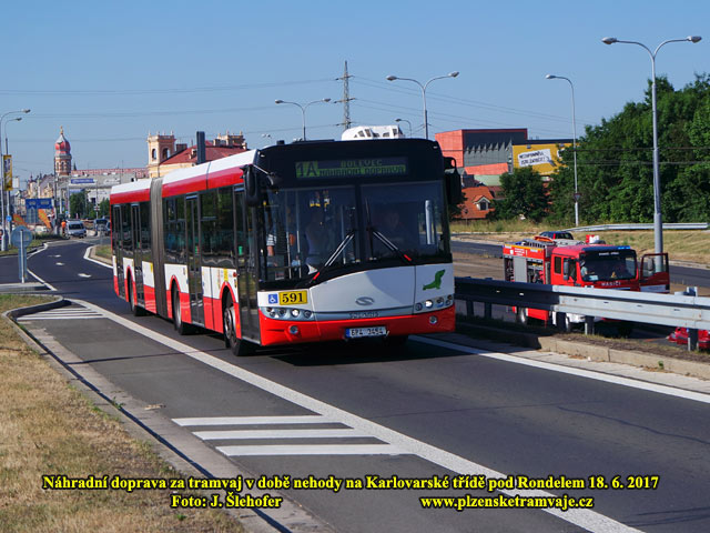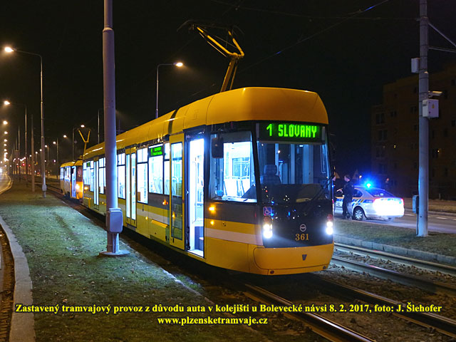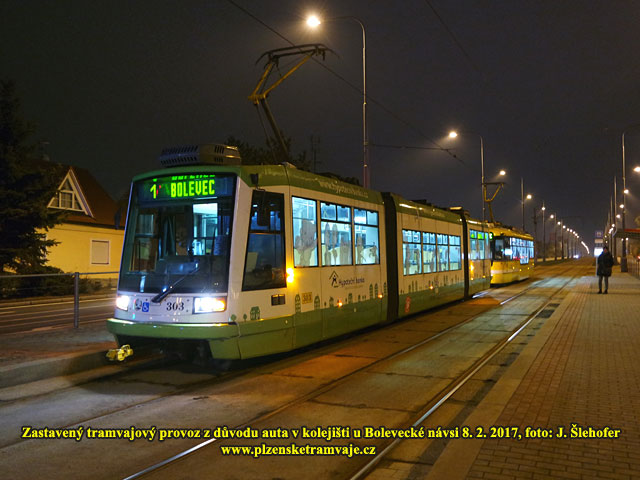 ve směru z Bor a Slovan otáčely v sadech Pětatřicátníků. Odtud pak na Košutku a do Bolevce vyjely autobusy náhradní dopravy. Provoz byl obnoven po odtažení auta mimo koleje cca v 9:45.