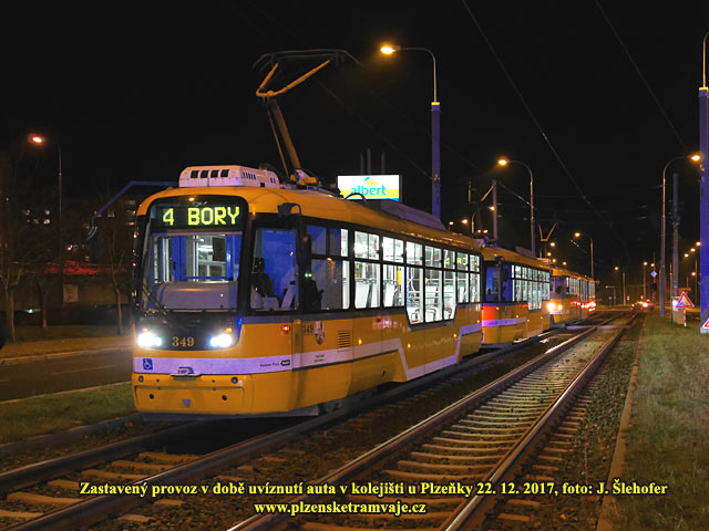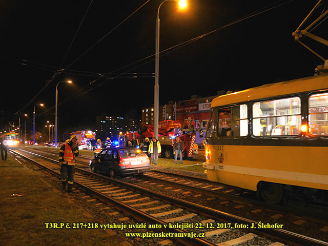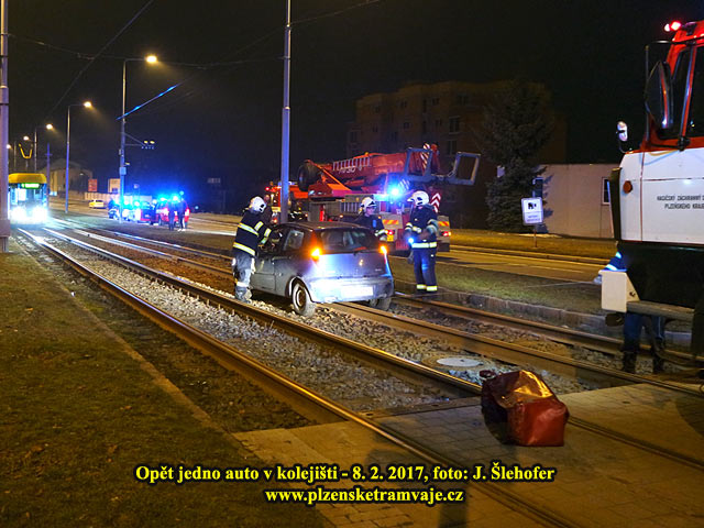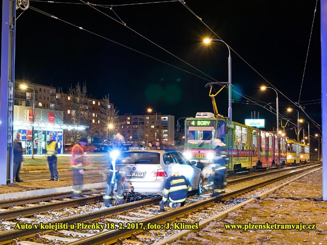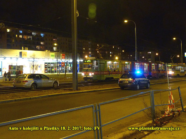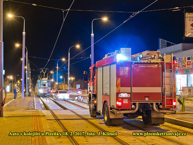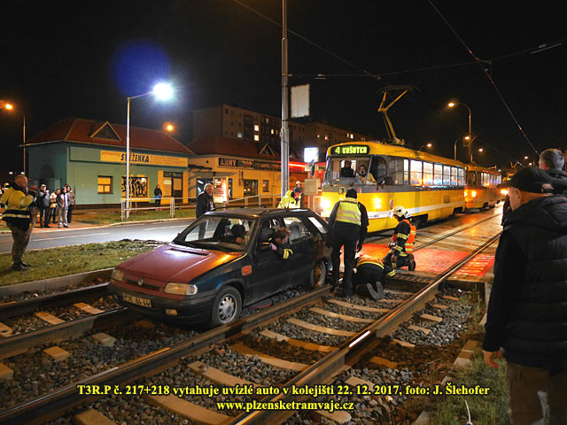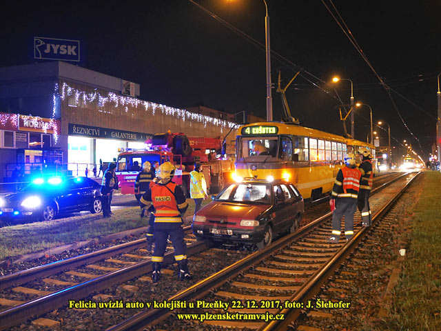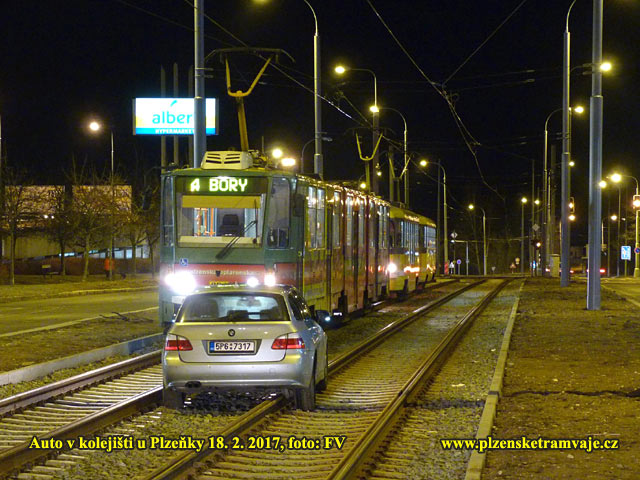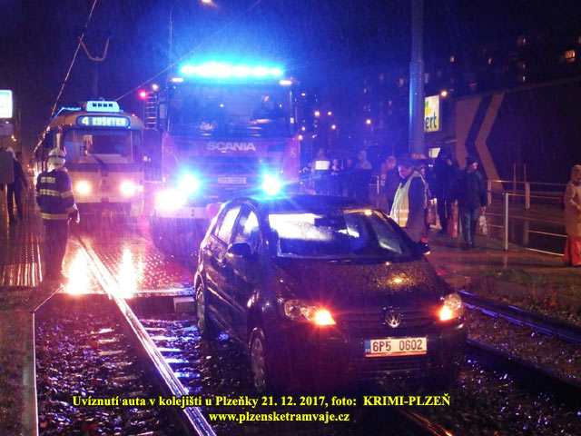 Dva dny za sebou se za tramvajovou zastávkou Plzeňka objevilo opět auto v kolejišti. První případ byl ve čtvrtek 21. 12. 2017 cca v 16:30 a vyproštění trvalo cca 40 minut.