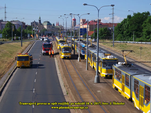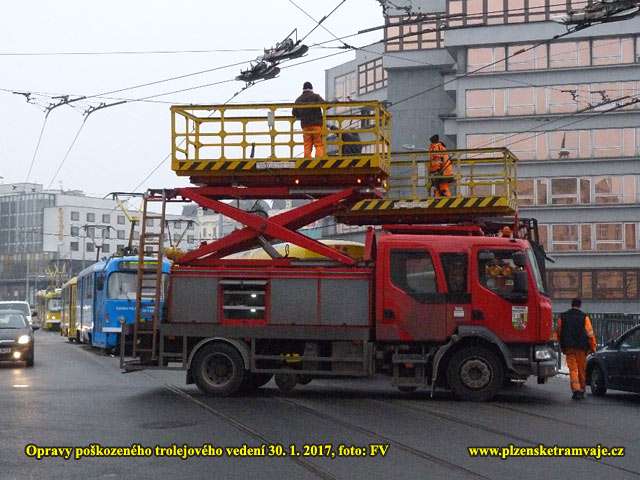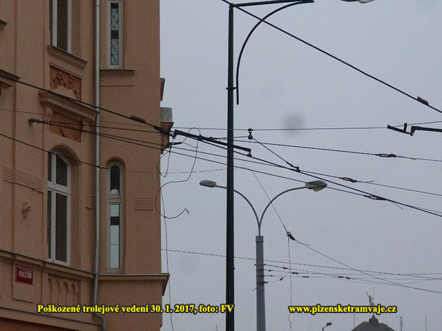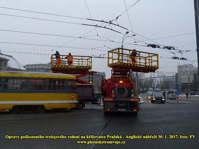 V pondělí 30. 1. 2017 došlo odpoledne cca v 15:35 k poškození trolejového vedení na křižovatce Pražské a Anglického nábřeží.