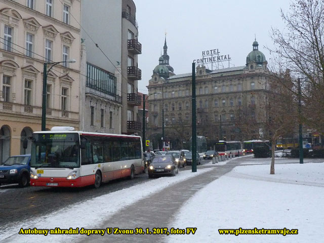 č. 1 a 2 se ve směru od centra otáčely U Zvonu a na Slovany a Světovar vyjely autobusy náhradní dopravy. Trolejbusy projížděly kolem pouze