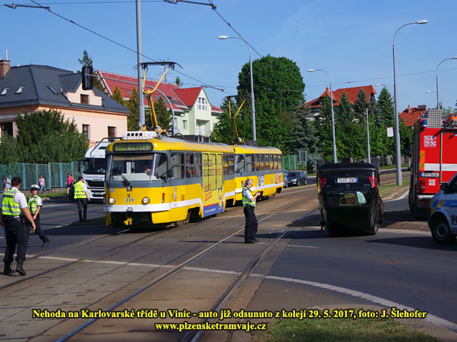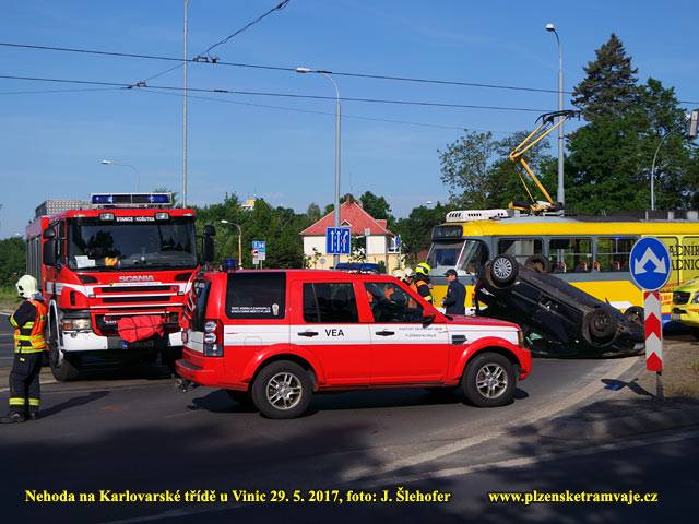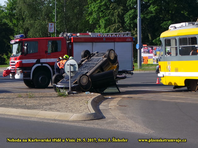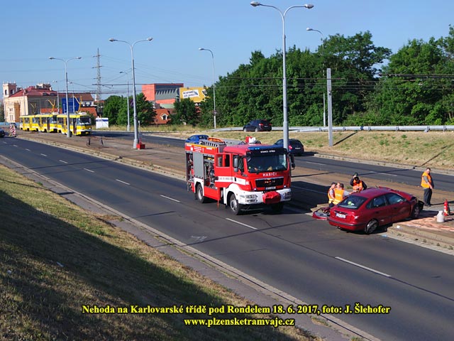 návsi. Vzhledem k tomu, že šlo o lehčí auto, trvalo hasičům vyproštění jen chvíli a cca za dvacet minut mohl být provoz tramvají obnoven.