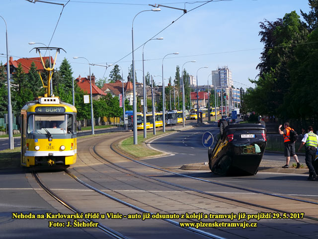 tak že se tam občas někomu do kolejiště povede špatně odbočit. Ale tady zřejmě najel špatně na křižovatce u Plzeňky, musel projet ještě po panelech