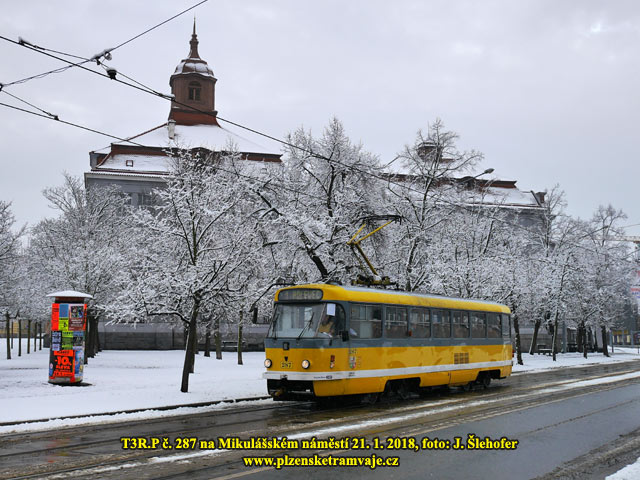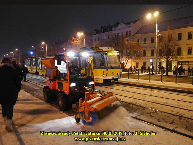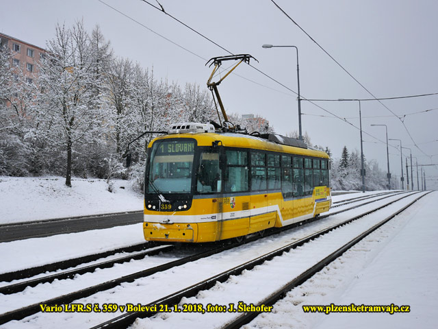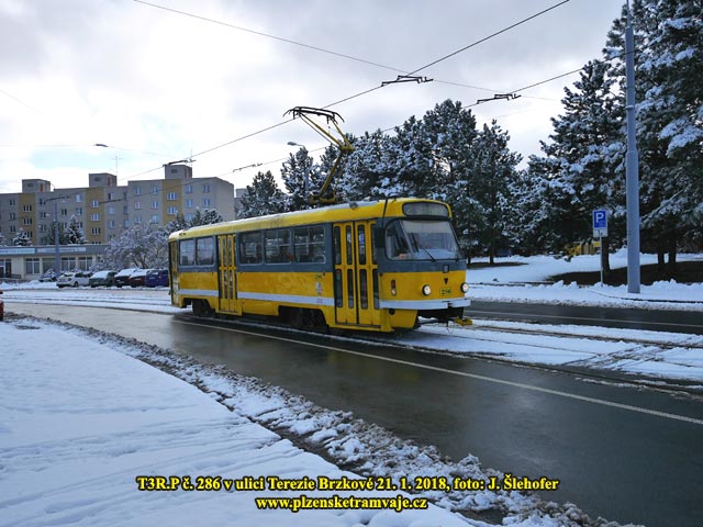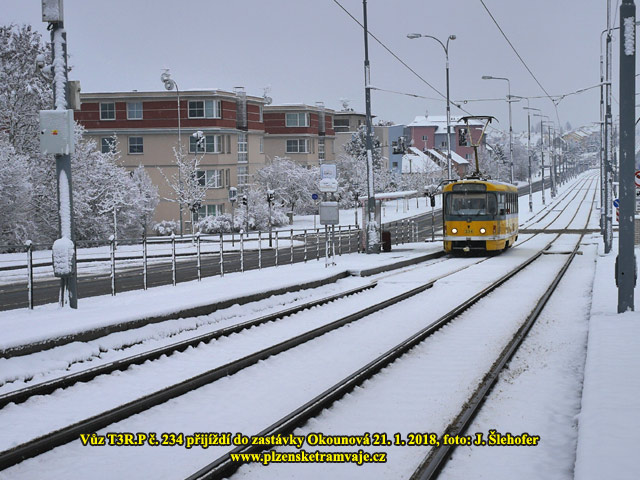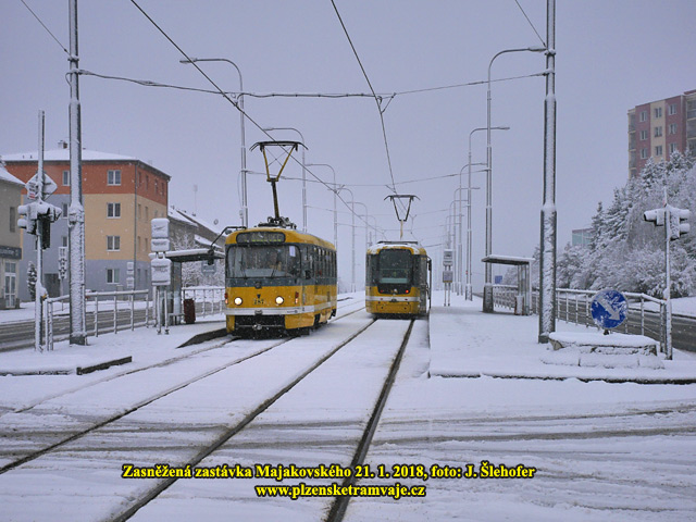 předchozím týdnu, v Plzni trochu nasněžilo až přes noc na neděli 21. 1. 2018. Níže tedy fotografie tramvají na sněhu převážně z dopoledne, kdy ještě sněžilo.