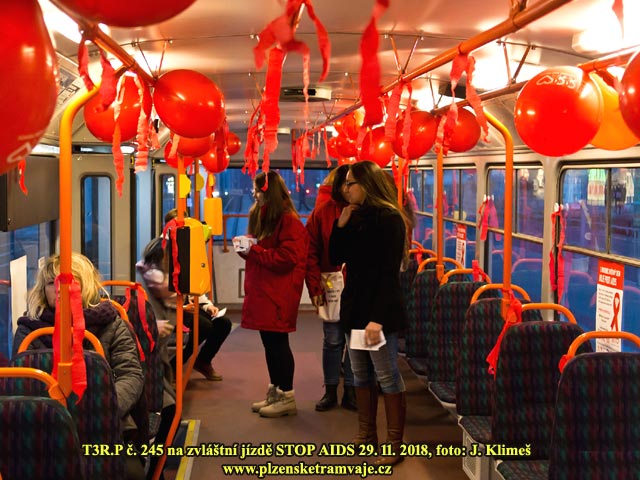 Ve čtvrtek 29. 11. 2018 vyrazila do ulic opět preventivní tramvaj STOP AIDS. Jako v předchozích letech uvnitř studenti medicíny informovali o rizicích nákazy HIV, rozdávali informační materiály a kondomy.