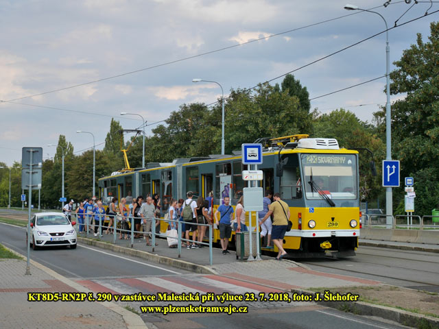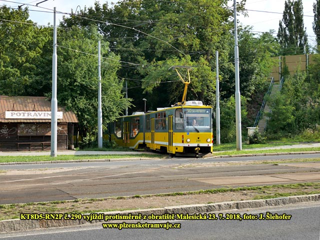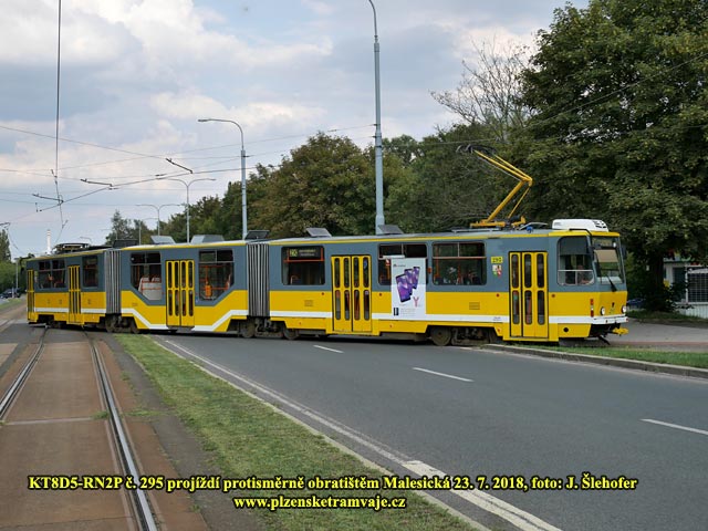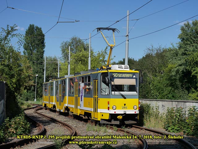 zastávce Malesická vysadí cestující. Následně popojede za sjezdovou výhybku. Nasazeny jsou zde obousměrné vozy KT8D5-RN2P. Řidiči tak přejdou na opačné stanoviště a