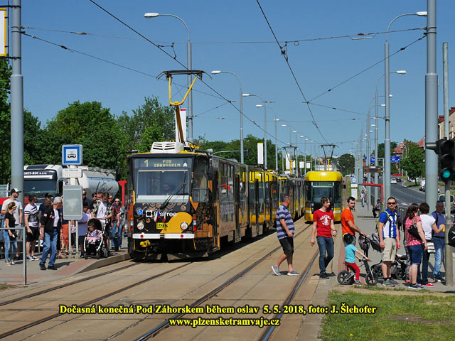 Ve směru od Severního předměstí, byla letos využita před mostem instalovaná povrchová výhybka tzv. kaliforňan (je zde díky rekonstrukci mostu Generála Pattona) a tak zde obousměrné tramvaje mohly obracet.