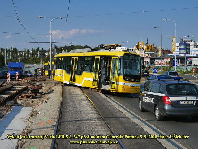 Ve středu 5. 9. 2018 došlo kolem sedmnácté hodiny k vykolejení předního vozu soupravy vozů Vario LFR.S č. 347+357 před mostem Generála Pattona. Důvodem vykolejení