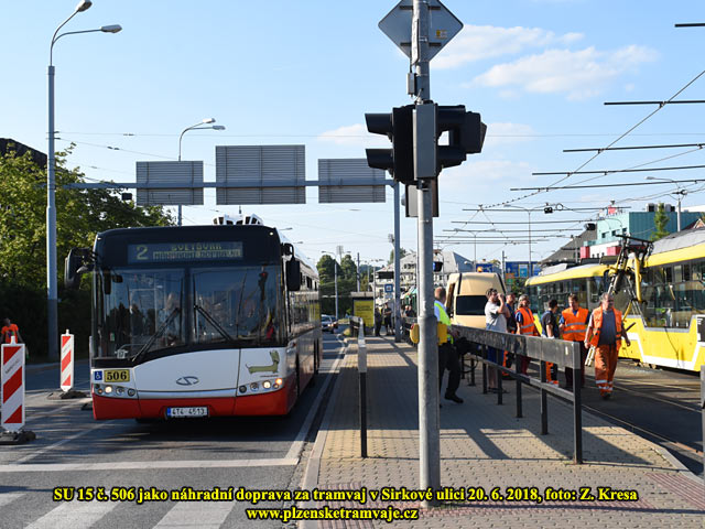 Tramvajové linky č. 1 a 2 od Skvrňan a Bolevce jsou opět ukončeny v zastávce Náměstí Republiky. Vozy se pak otáčí v obratišti u Zvonu. Cestující pak pokračují náhradní autobusovou