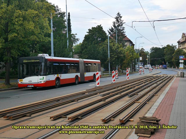 Ve dnech 11. – 19. 8. 2018 probíhá výluka tramvajové dopravy na lince 4 na Bory. Důvodem jsou stavební práce na tramvajové trati na Klatovské třídě, konkrétně ve