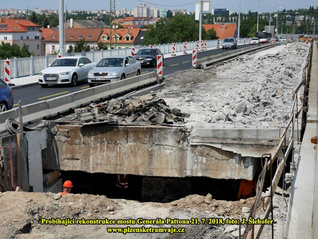 Postupující rekonstrukci mostu Generála Pattona zde bylo věnováno méně prostoru než větší stavbě u nádraží. Také postup prací a způsob oprav druhé poloviny mostu se