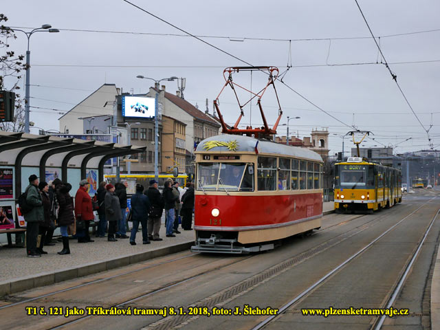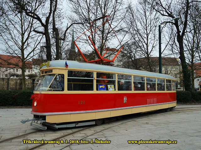 V pondělí 8. ledna vyrazila do ulic Plzně historická tramvaj T1 č. 121. Tramvaj vypravili PMDP ve spolupráci s Diecézní charitou Plzeň. Vůz projížděl po celém městě mezi 9:00 - 17:30 hod.