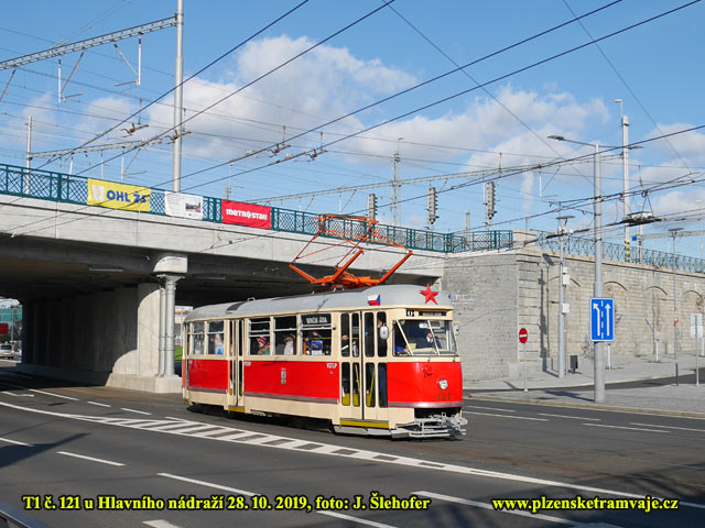 V sobotu i v neděli odpoledne vyjíždějí na své zvláštní linky také historické vozy PMDP. Z tramvají jsou to T1 č. 121 a T2 č. 133.