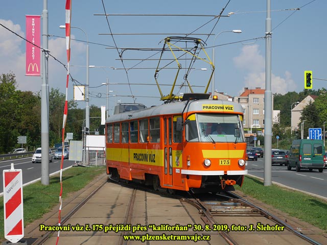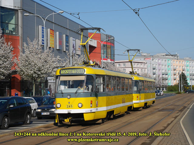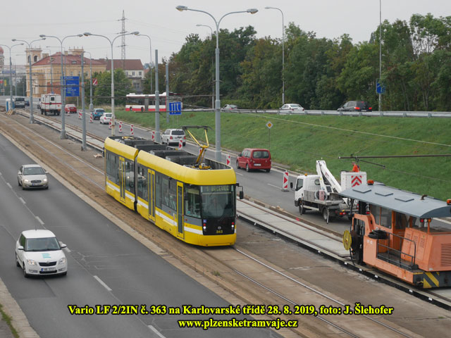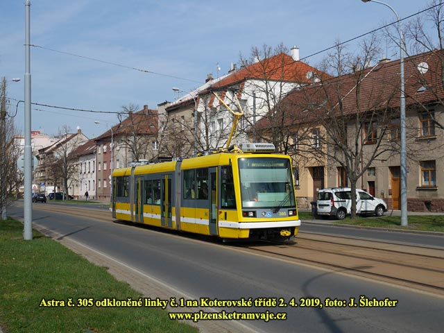 tramvajové trati, je linka č. 1 ve směru na Slovany odkloněna po trase linky č. 2 po Koterovské třídě na Světovar a pak