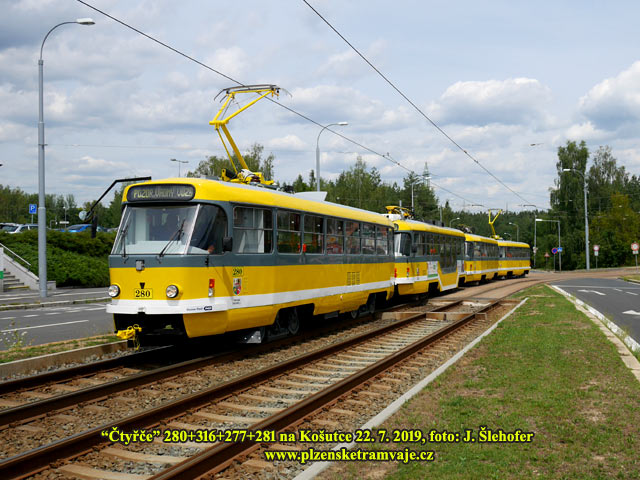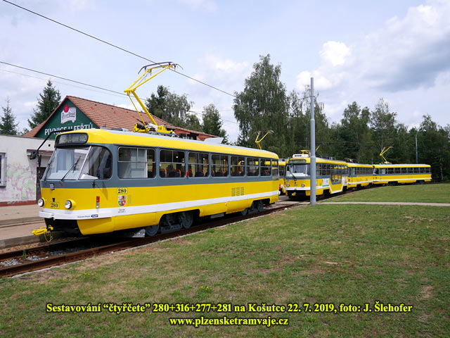 z vozovny se soupravou 280+281. Na Košutce bylo vytvořeno "čtyřče" 280+316+277+281 a to následně odjelo do vozovny.