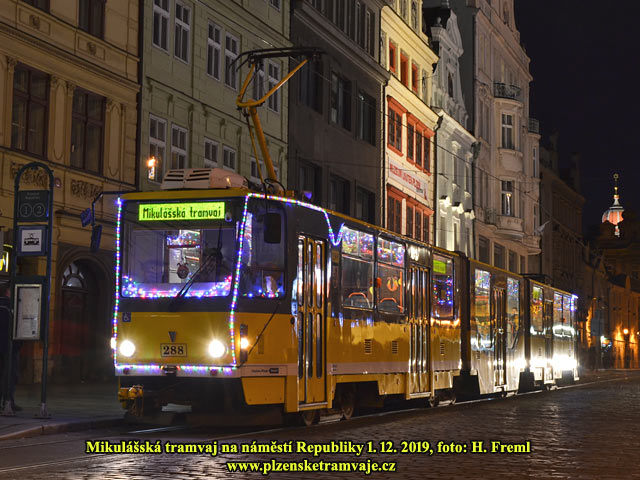 Již tradiční Mikulášská tramvaj vypravená čertovskými spolky Společnostní pro veřejnou dopravu, ŠKODA-BUS-Klubem a Plzeňskými městskými dopravními podniky vyrazila na svou