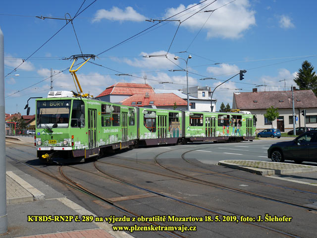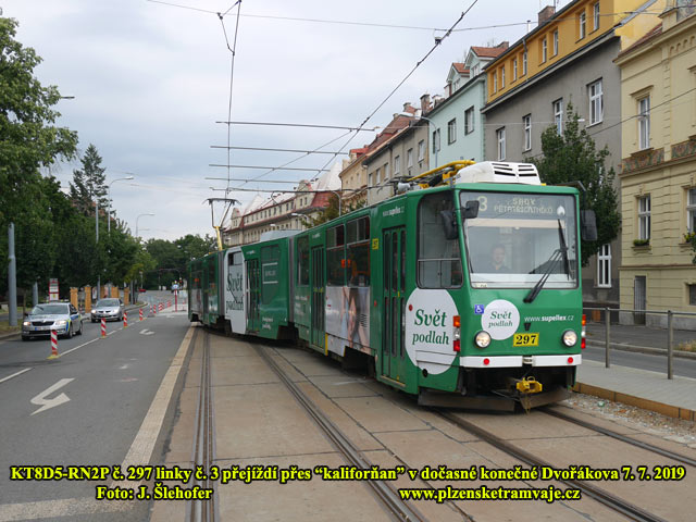 ale pak pokračují po manipulační trati kolem vozovny na Světovar. Zde musí projet obratištěm a do centra směřují po Koterovské třídě po trase linky č. 2.