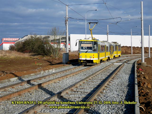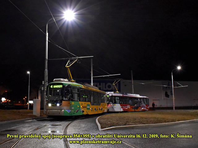 od pondělí 16. 12. 2019 vyjíždějí tramvaje na novou trať. První pravidlený spoj na konečnou Univerzita byl obsloužen soupravou Vario LF plus č. 354+355.