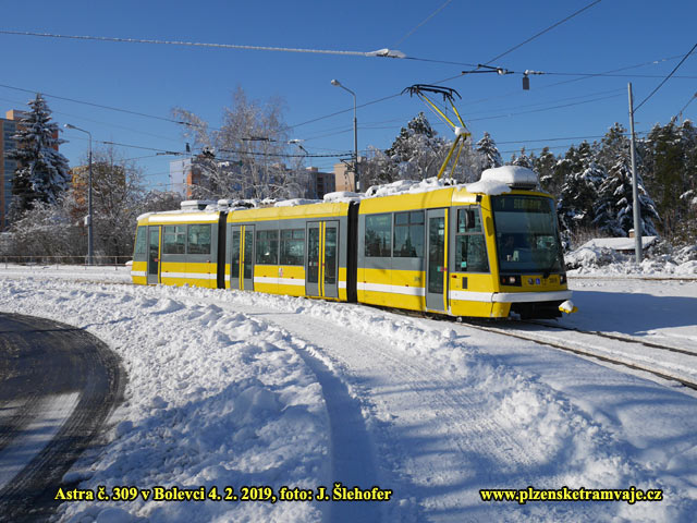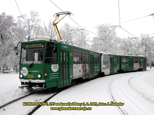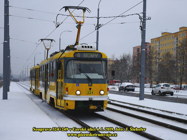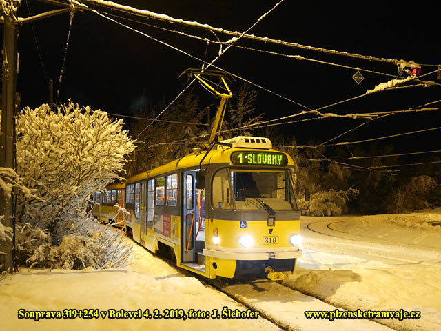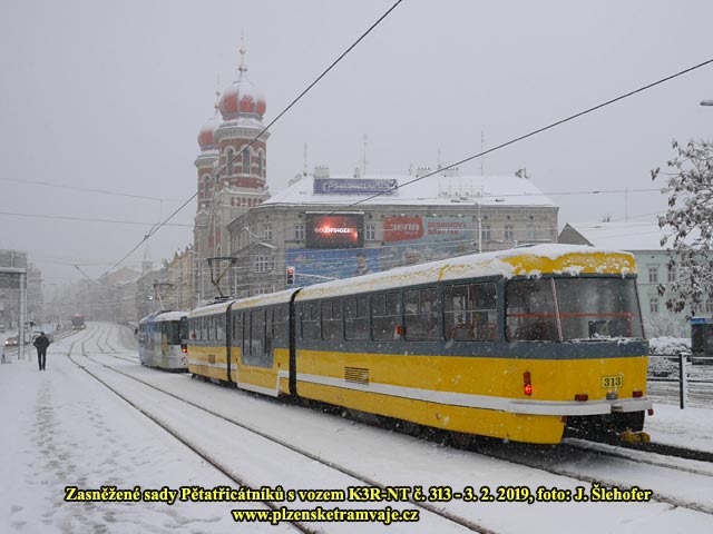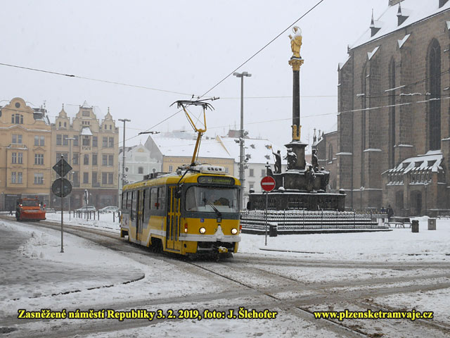 Začátkem roku přidáme opět trochu tramvají na sněhu. Fotografie pochází z 2. a 4. 1. 2019, kdy se objevila krátkodobá sněhová nadílka. Obvykle však v Plzni