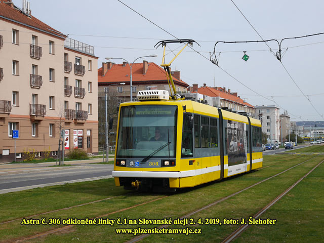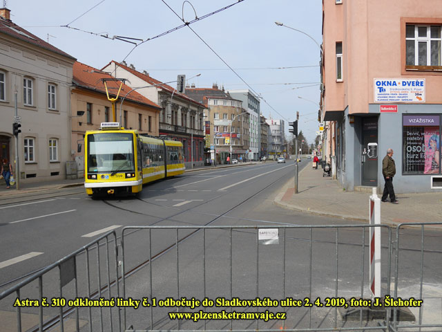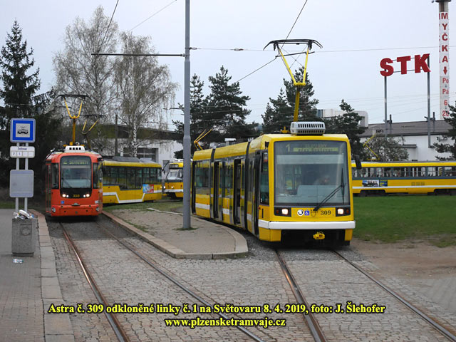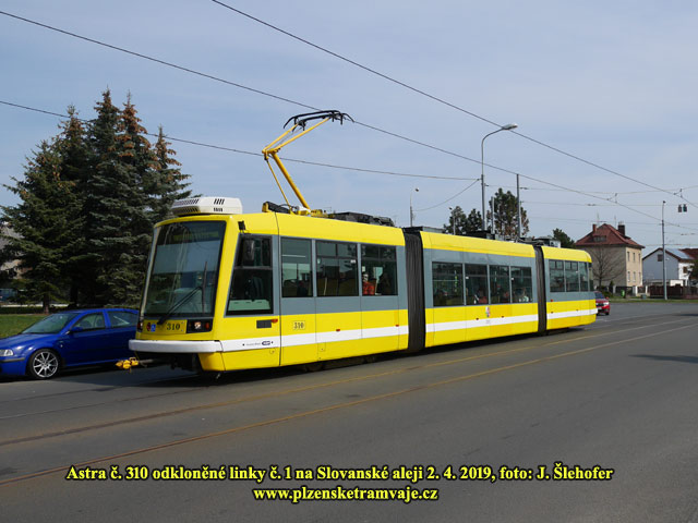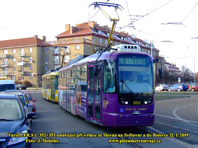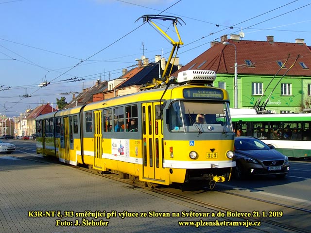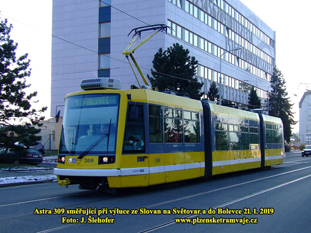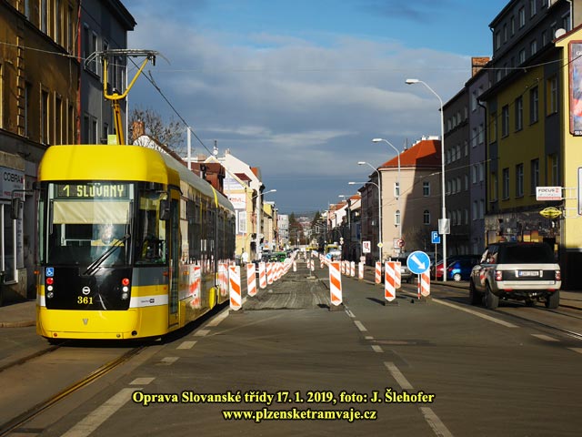 V termínu 21. - 28. 1. 2019 je linka č. 1 vedena v trase Bolevec - Slovany - Světovar - Bolevec. Ve směru z centra na Slovany jezdí tedy tramvaje po své trase,