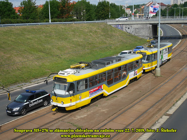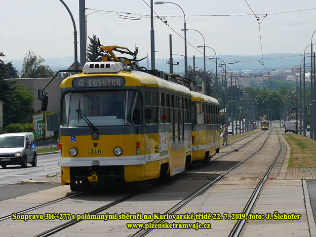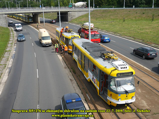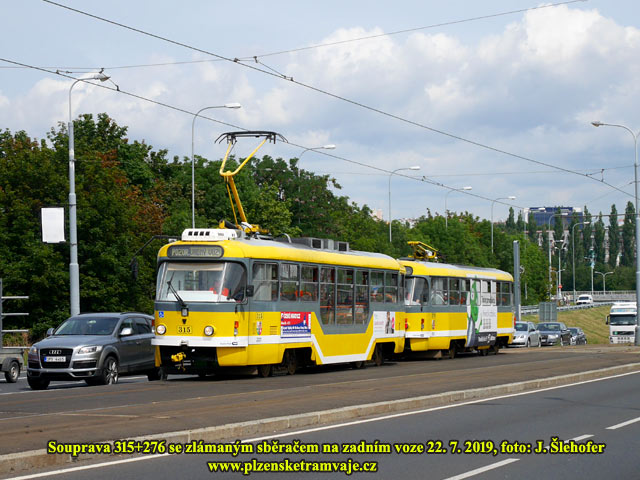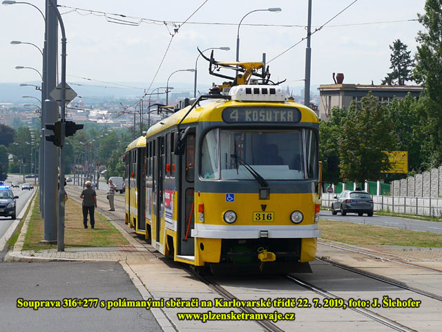 V pondělí 22. 7. 2019 dopoledne před jedenáctou hodinou došlo k poškození tří sběračů na tramvajích linky č. 4.