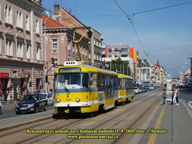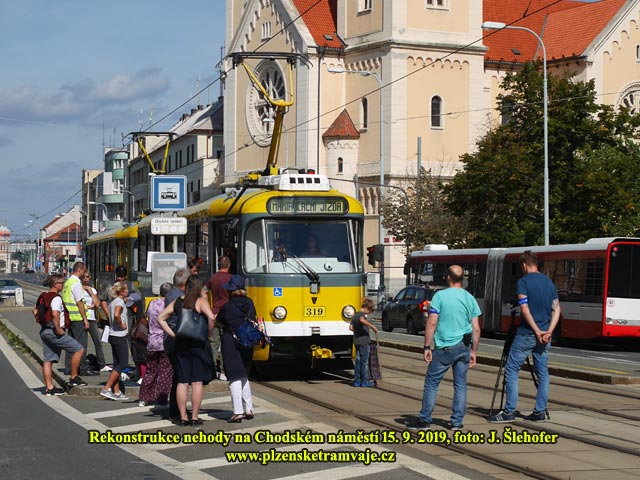 výluky odstaveny na konečné Dvořákova a dva vozy KT8D5-RN2P byly odstaveny v obratišti Malesická. Rekonstrukce nehody probíhala na Chodském náměstí se soupravou 319+254,