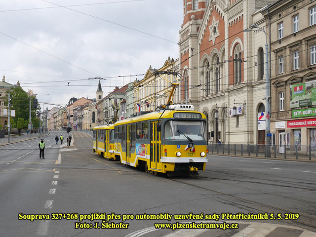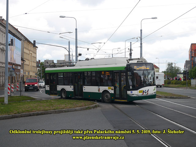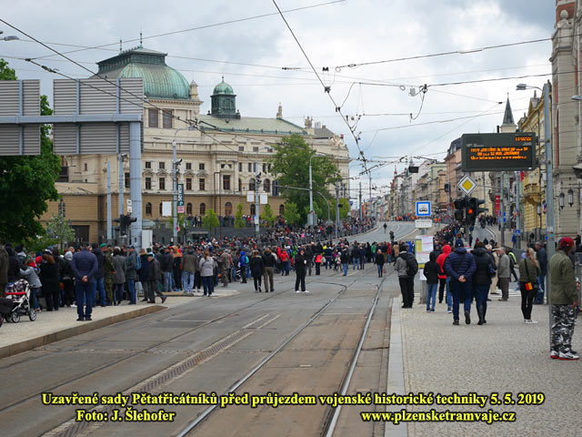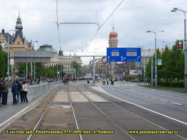 Pětatřicátníků a dvojky Skvrňany - Sady Pětatřicátníků. Po uvolnění náměstí Republiky cca ve 13:30 je provoz