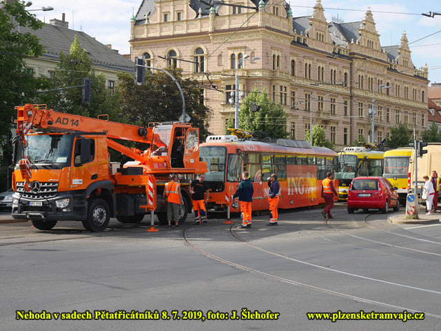 V pondělí 8. 7. 2019 cca v 7:30 došlo v sadech Pětatřicátníků k nehodě. Řidič soupravy Vario LFR.S 350+351 patrně
