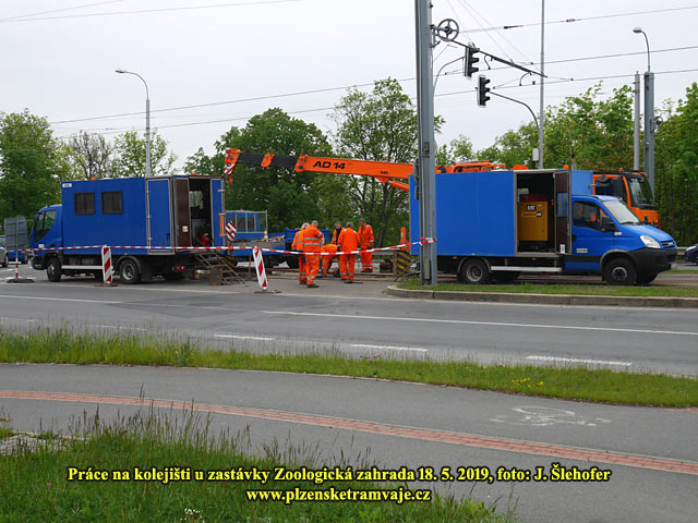 V sobotu 18. 5. 2019 probíhala od cca 6:30 do cca 16:00 výluka tramvajové dopravy na lince č. 4. Důvodem byly práce v kolejišti u zastávky Zoologická zahrada.