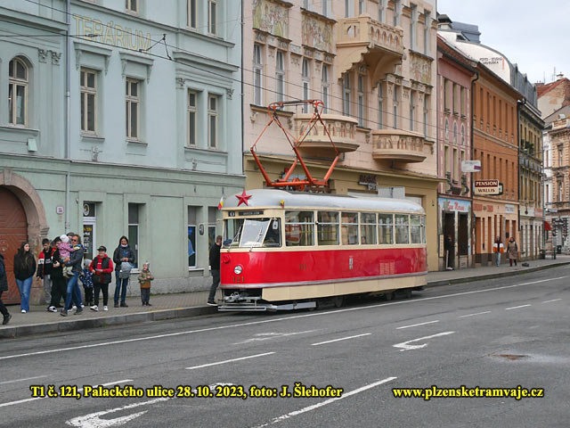 vozidel PMDP. Z tramvají letos byla nasazena T1 č. 121 s trasou Palackého ulice - Univerzita. Večer pak byla přerušena tramvajová doprava po dobu "průvodu světel" a