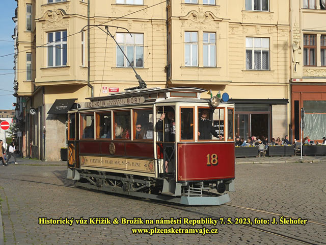 Odpoledne, avšak také později, než bylo původně plánováno, vyjíždějí historické tramvaje pro veřejnost. Legendární Křižík & Brožík č. 18 krouží po obvyklém kolečku kolem centra.