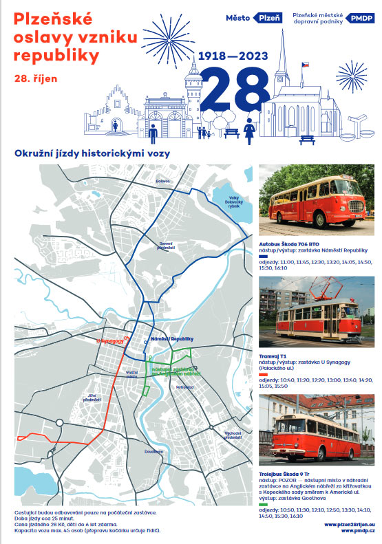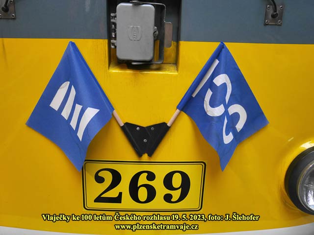 Ve čtvrtek 18. 5. 2023, následně i v pátek a o víkendu, vozily vozy PMDP vlaječky připomínající sté narozeniny vysílání Českého rozhlasu.