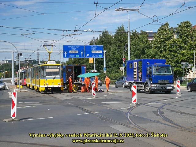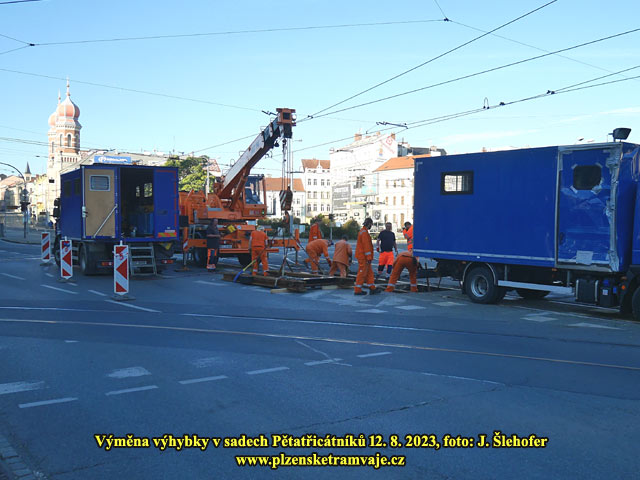 V sobotu 12. 8. 2023 proběhla další krátkodobá výluka během které byla měněna sjezdová výhybka v sadech Pětatřicátníků
